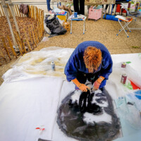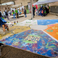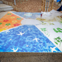 Le 20 décembre, à l’occasion des 25 ans de la Maison pour Tous Colucci et de l’inauguration de la ligne 5 du tramway de Montpellier, nous avons été invités à réaliser une fresque participative au cœur de cet événement festif.