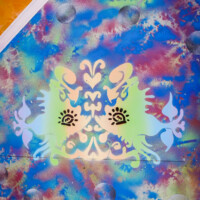 En parallèle de la fresque, nous avons animé un atelier pochoir intitulé « Imagine ton tram ». Petits et grands ont été invités à imaginer leur propre tram à l’aide de pochoirs préparés en amont.