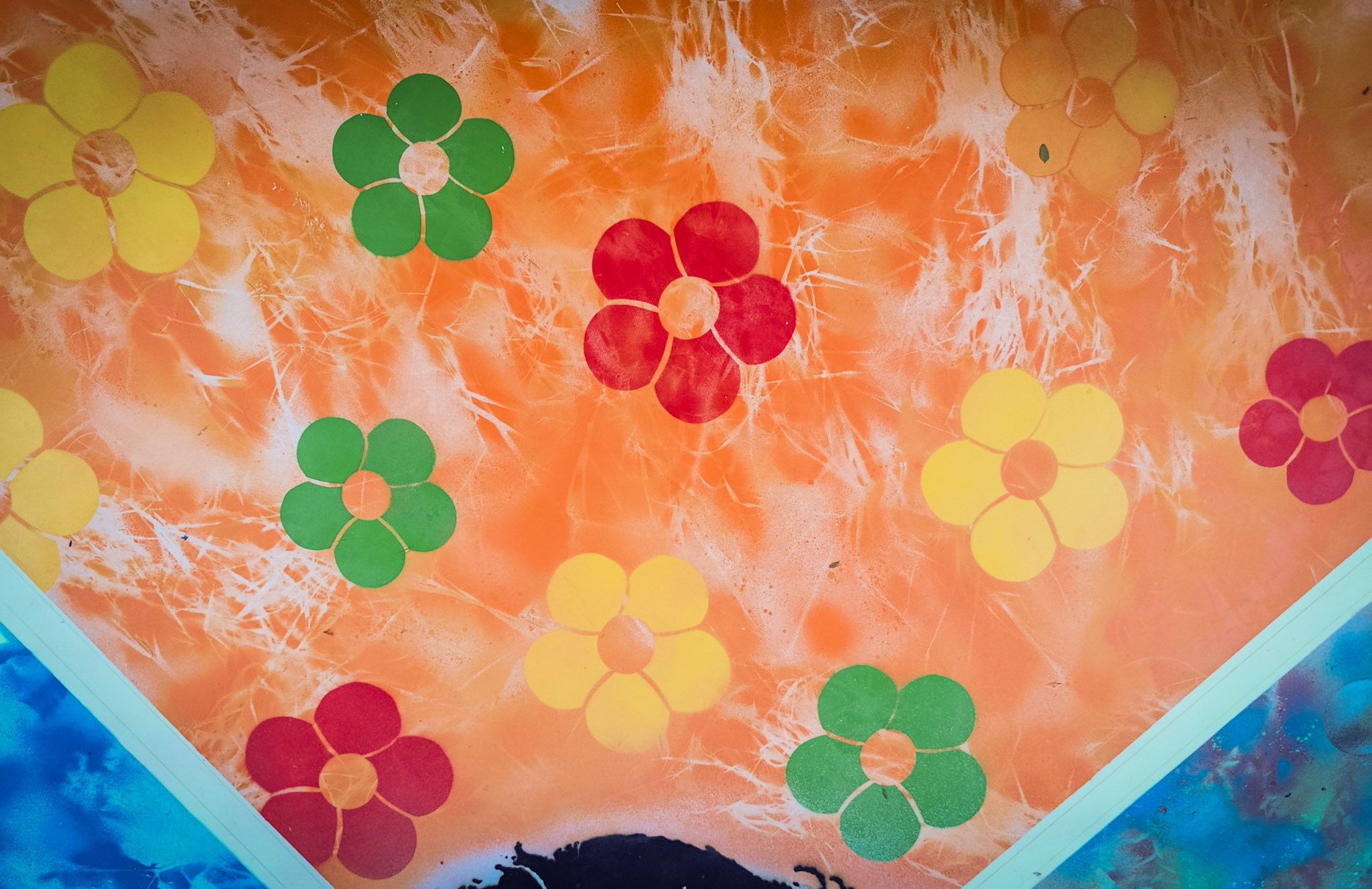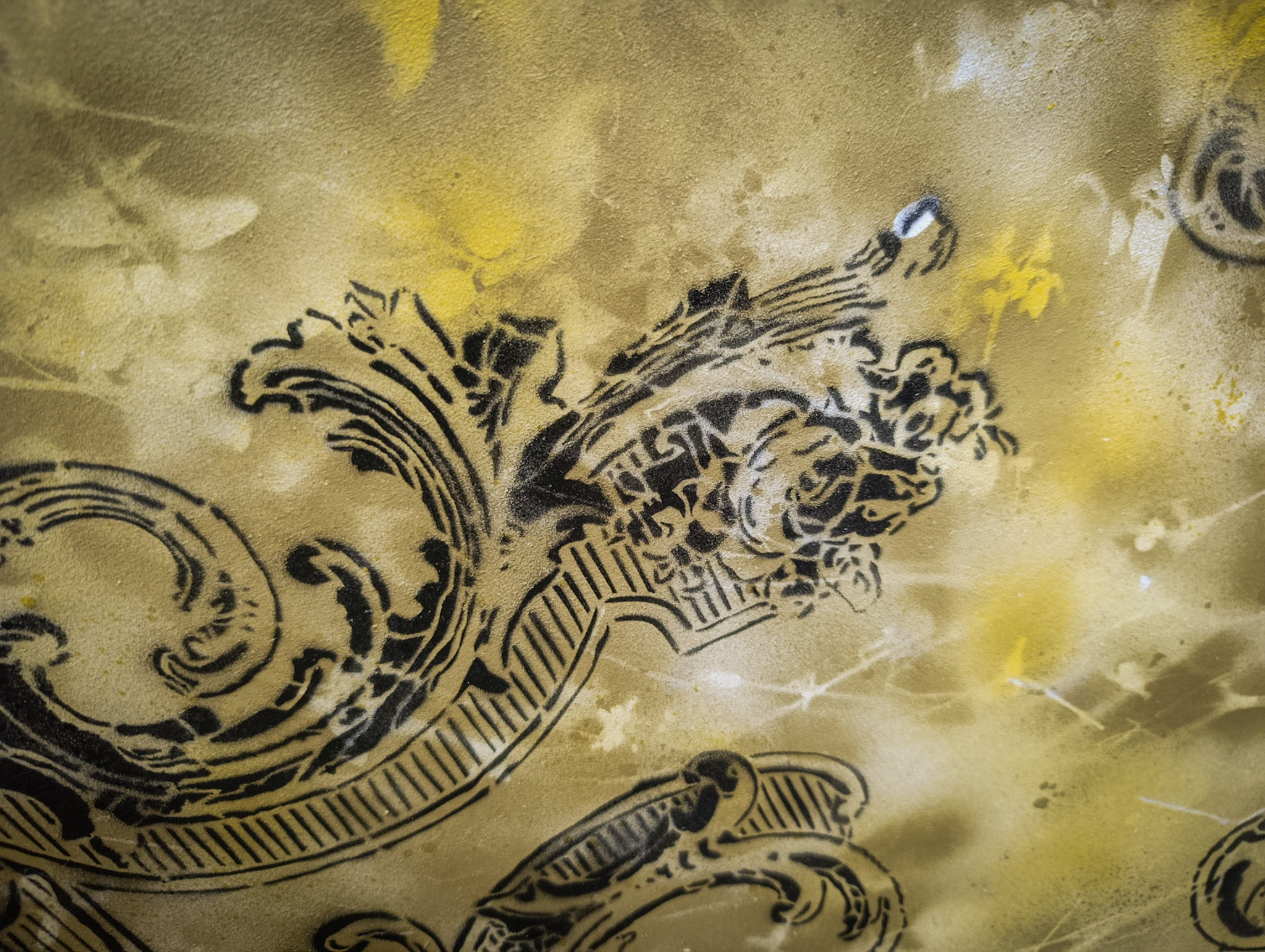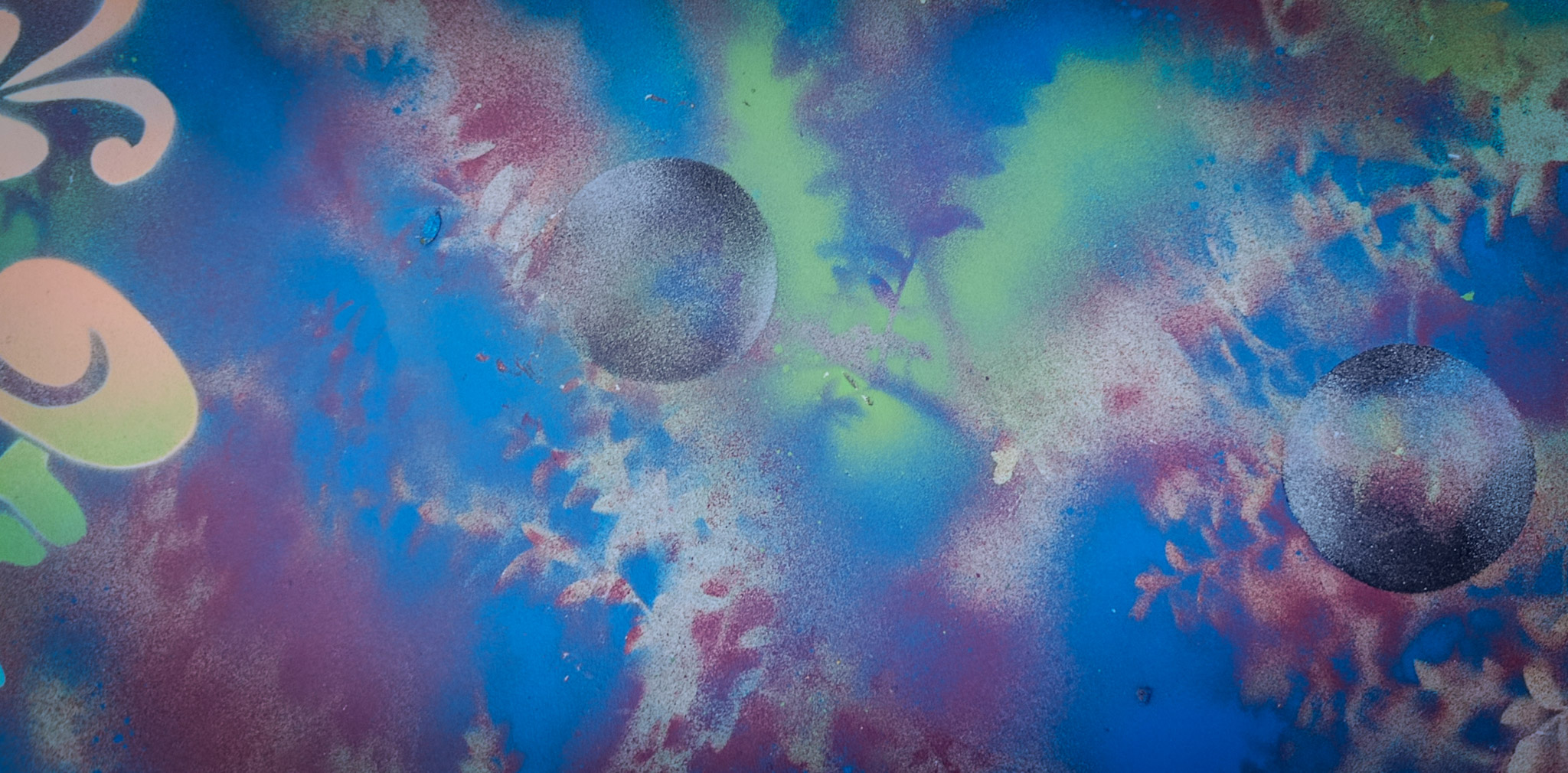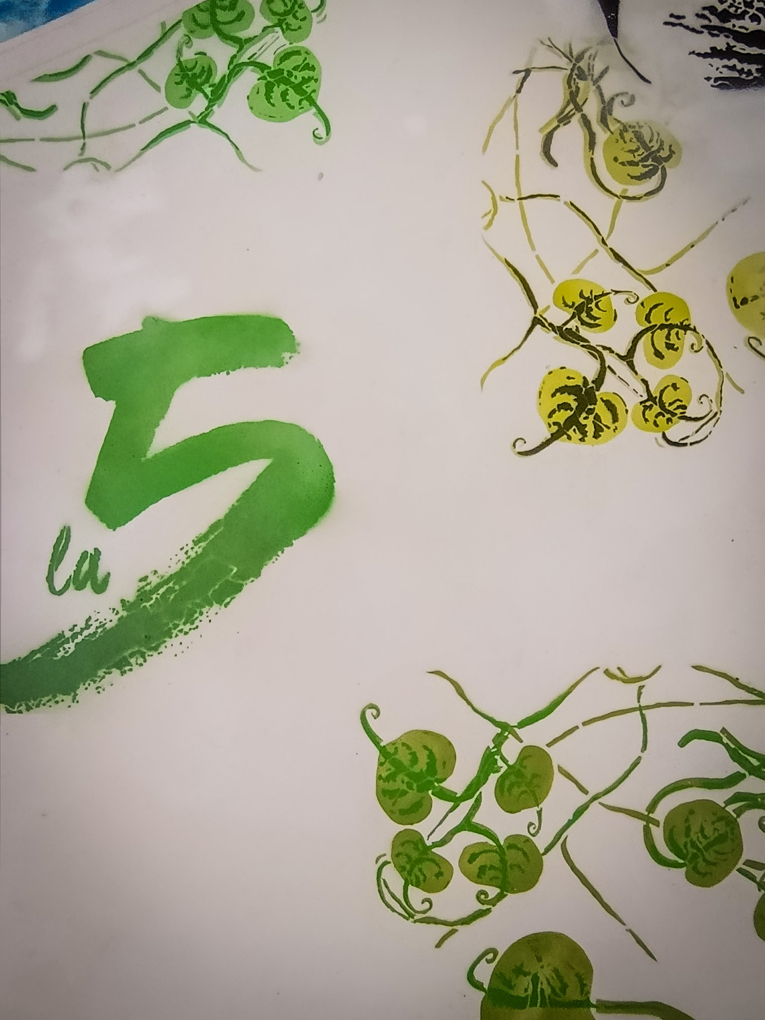 Nous avons réalisé une fresque de 2,40 × 2,50 mètres, construite à partir d’une reprise en pochoir des motifs graphiques propres à chaque ligne de tramway de Montpellier. Chaque ligne, reconnaissable par son identité visuelle, est intégrée dans une composition globale sur fond structuré, mêlant couleurs et textures.