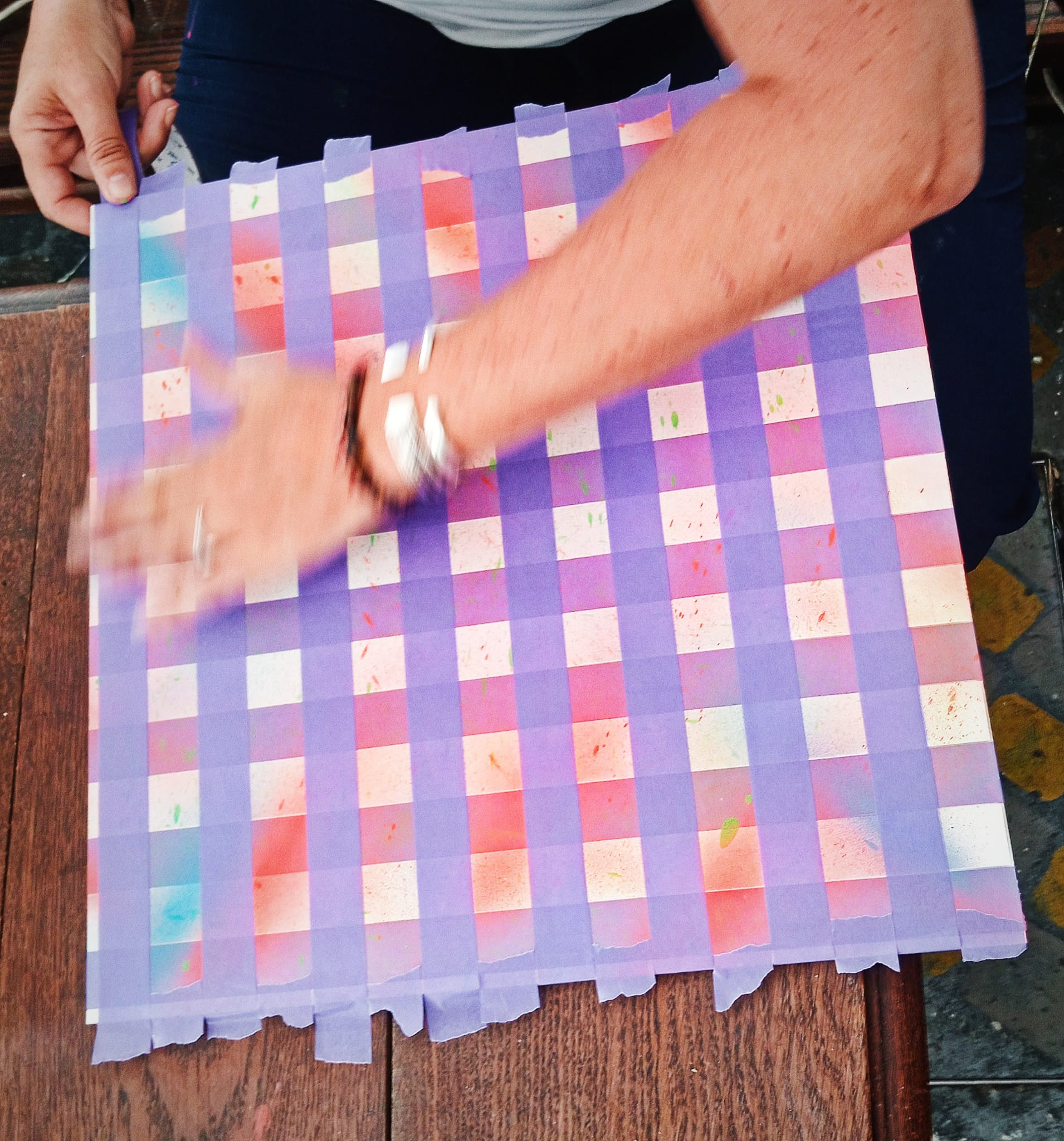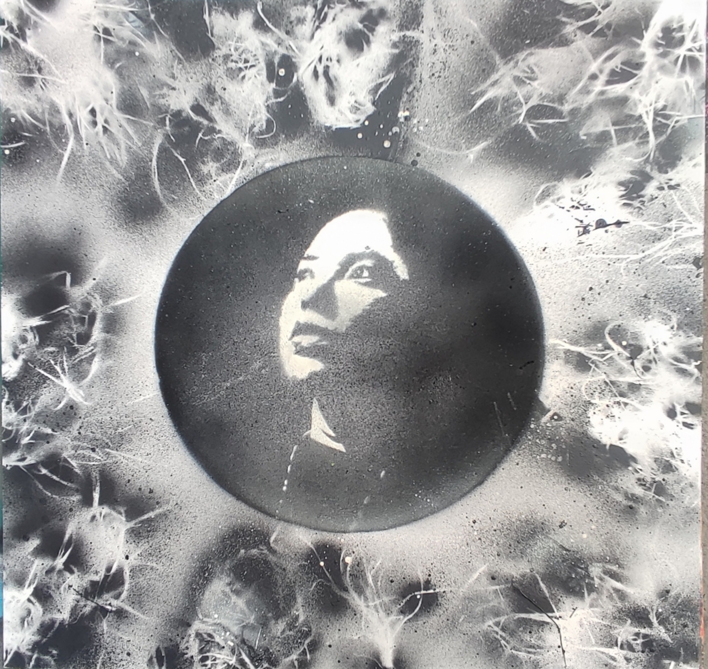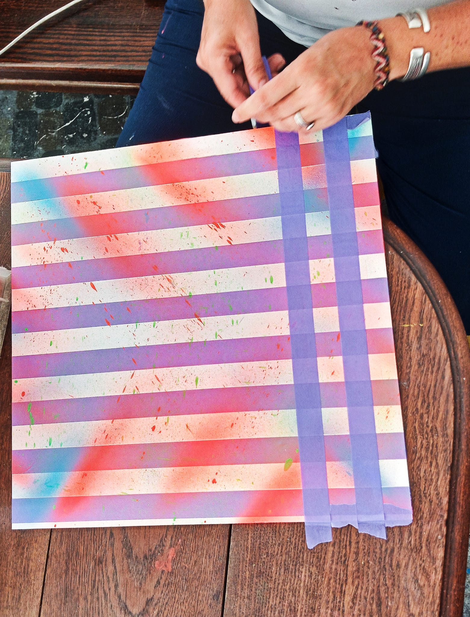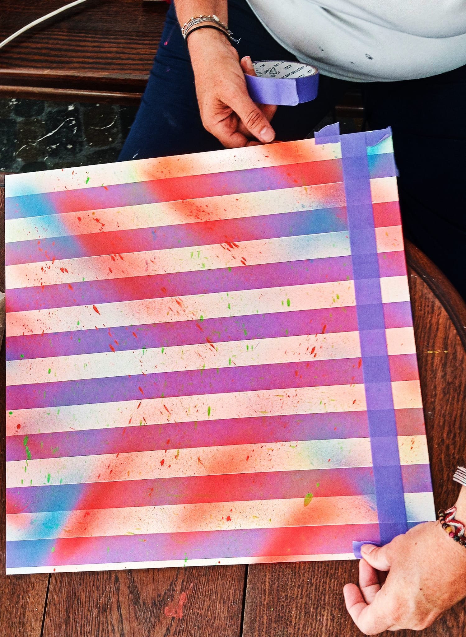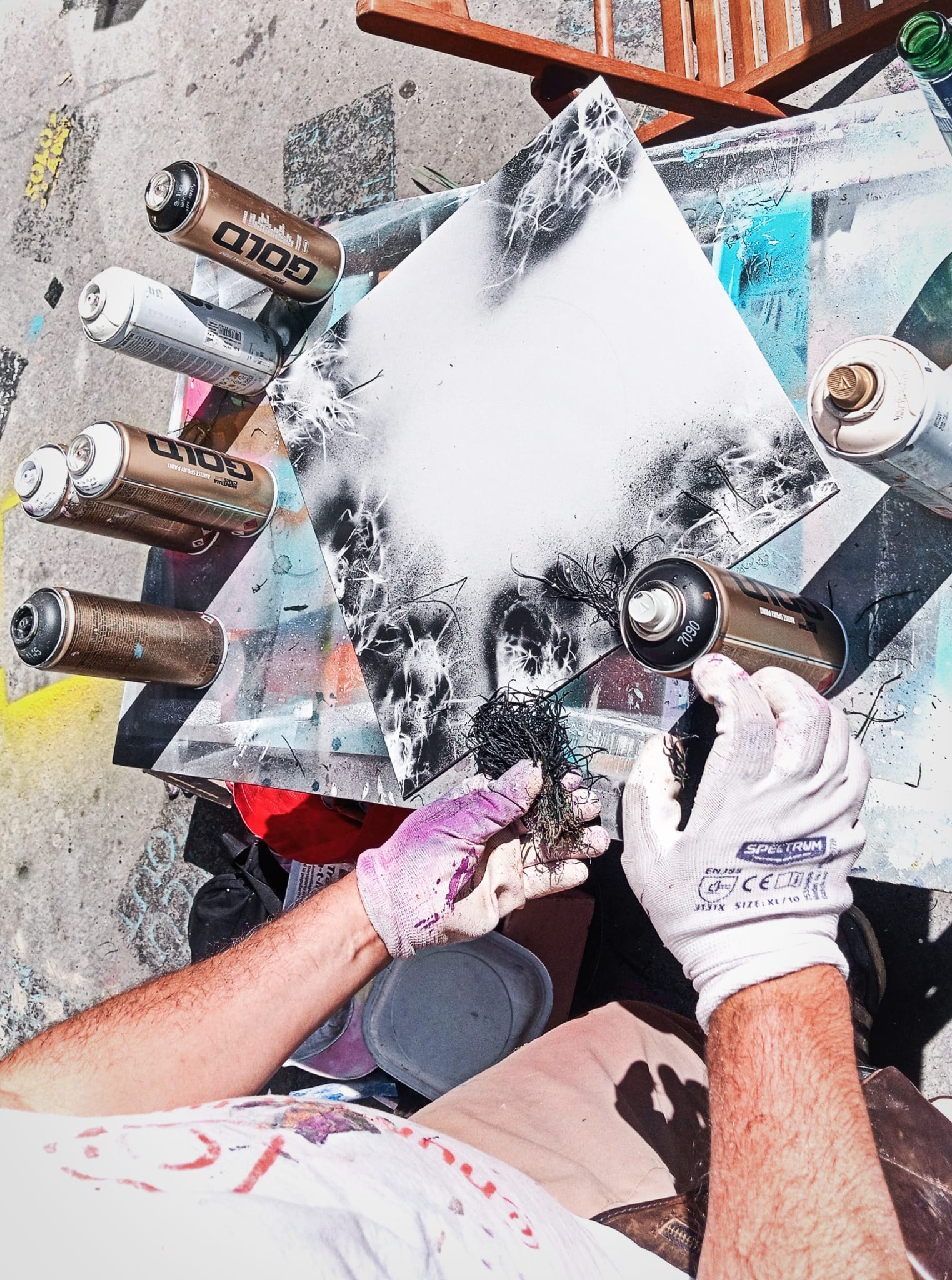 Les fonds végétaux, les sphères légères et les dégradés colorés caractéristiques de leur univers se sont déployés sur les supports donnés pour l’exposition collective Stencil 2025, transformant cette journée en un moment de création collective et de lien humain.