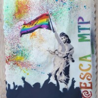 👉 Barcelone – Là-bas, notre Liberté guidant le peuple version rainbow a rejoint un mur couvert de messages, de cœurs et de personnages pop. https://www.instagram.com/pasteupbarcelonacity/